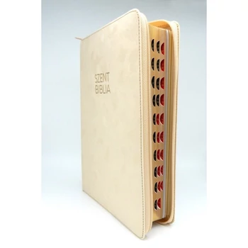Nagy Biblia - Bézs Bársony - Cipzárral - Regiszterrel