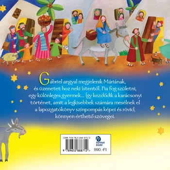 Gábriel angyal megjelenik Máriának, és üzenetet hoz neki Istentől. Fia fog születni, egy különleges gyermek... Így kezdődik a karácsonyi történet, amit a legkisebbek számára mesélnek el a könyvecske színpompás képei és rövid, könnyen érthető szövegei. | |